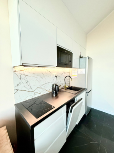 Domek Brooklyn to coś więcej niż tylko miejsce do spania – to przestrzeń, która inspiruje do odpoczynku i spędzania czasu w gronie najbliższych. Dzięki przemyślanemu układowi pomieszczeń, każdy znajdzie tu swoją strefę komfortu, niezależnie od tego, czy wolisz relaks na kanapie, gotowanie w pełni wyposażonym aneksie kuchennym, czy wieczory na tarasie.